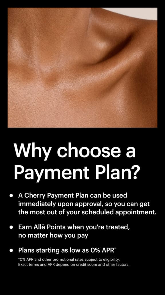 Allē Pay is offered through Allergan’s rewards program and is integrated directly into your Allē account. It allows patients to pay over time for Allergan treatments such as Botox, Juvederm, SkinMedica, and DiamondGlow.